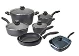 Swiss Diamond nonstick cookware has an amazingly durable surface composed with diamond crystals, so durable you can use metal utensils without scratching the surface. This unique non-stick composition also allows you to throw these nonstick pans in the dishwasher without ruining the cooking surface. This Swiss Diamond nonstick 10 piece cookware set cookware set includes a wide range of pots and pans with appropriate lids including a bonus 8 Inch Square Saute Pan. The nonstick surface is PFOA-free. This set includes: 8 inch fry pan, 10 inch fry pan, 1.4 qt sauce pan with lid, 2.2 quart sauce pan with lid, 3.2 quart saute pan with lid, 8.5 qt stock pot with lid. Bonus 8 inch square saute pan with lid. Lifetime warranty, made in Switzerland. This set includes: 8 inch fry pan, 10 inch fry pan, 1.4 qt sauce pan with lid, 2.2 quart sauce pan with lid, 3.2 quart saute pan with lid, 8.5 qt stock pot with lid Bonus 8 in square saute pan with lid makes this a 12 piece set Durable Nonstick surface composed of diamonds and is PFOA free Dishwasher Safe, Metal Utensil Safe Lifetime Warranty, Made in Switzerland